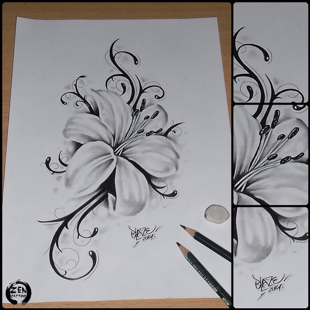 A stunning black and white lily drawn with smooth pencil shading and gentle curves.