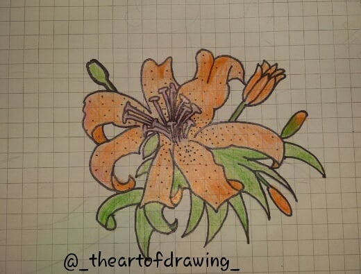 A simple and sweet lily drawing made with colored pencils on graph paper.