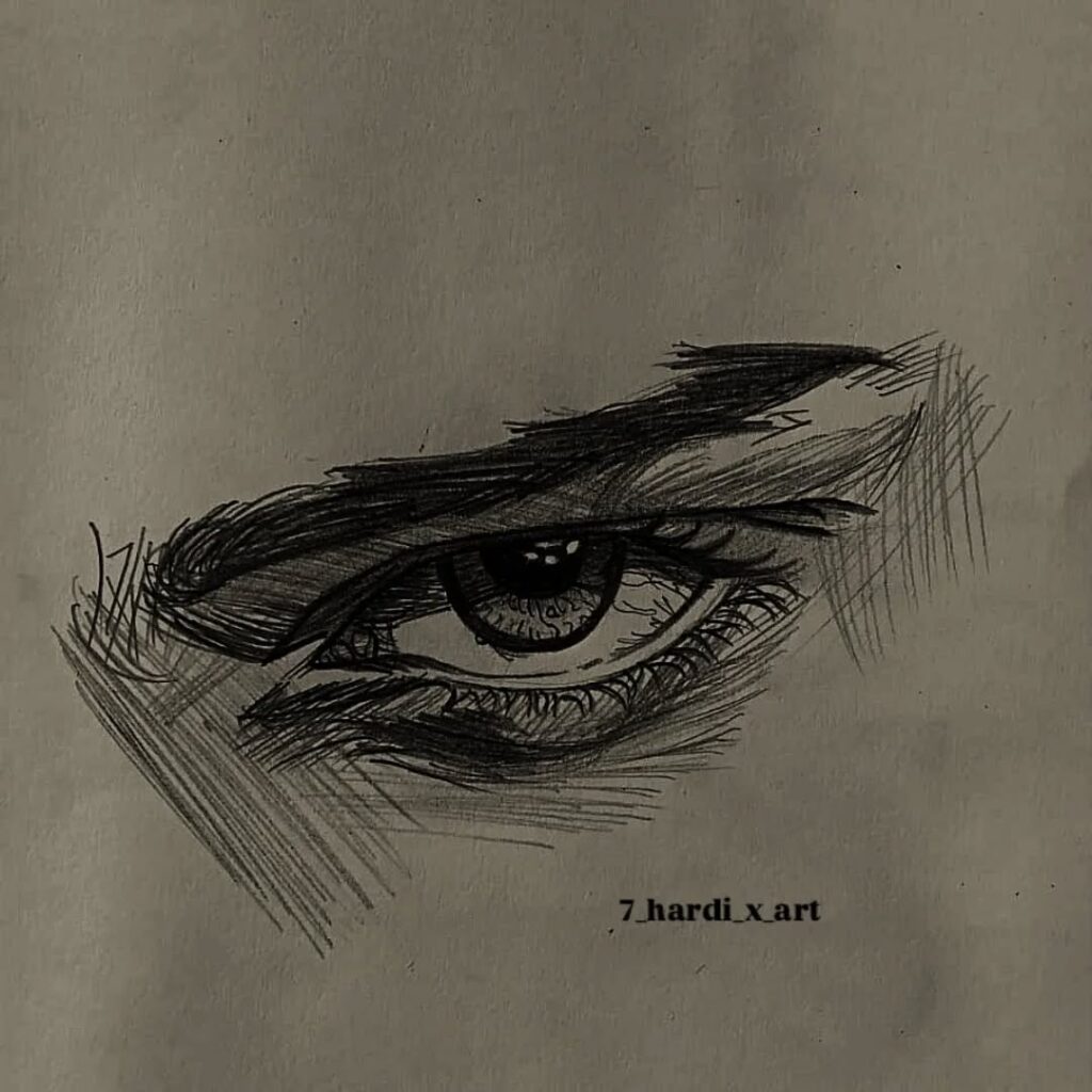 A pencil sketch showing one focused eye. The shading and strong lines make it look serious and deep.