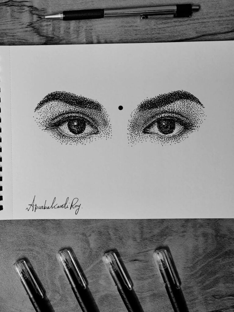 This artwork uses small dots to make two beautiful eyes. It’s neat, clean, and full of patience.