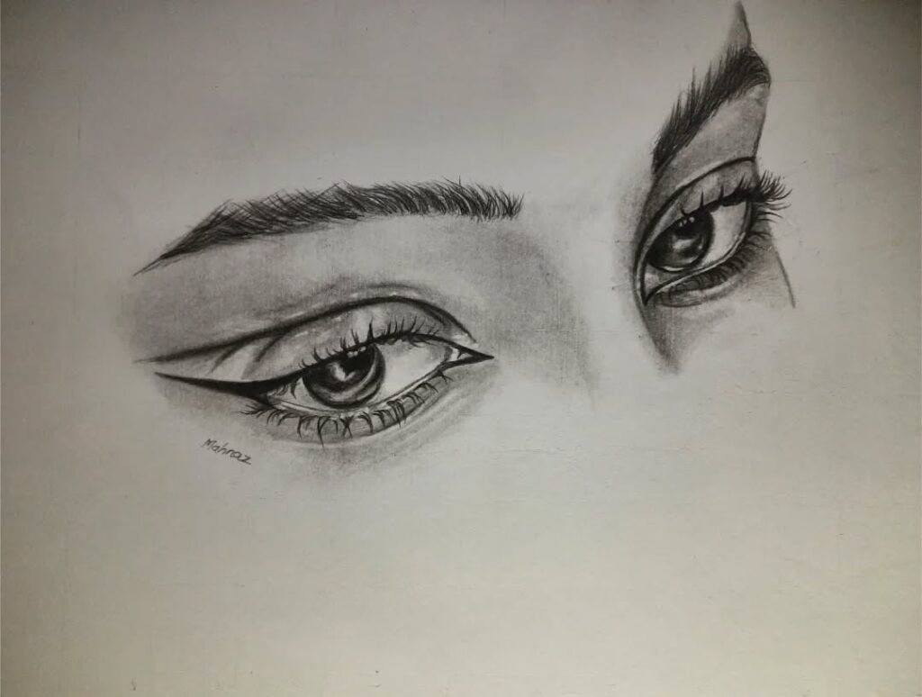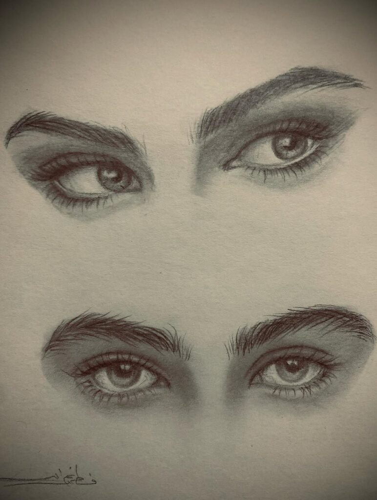 Two pairs of expressive eyes drawn in pencil. The bold shadows make them stand out.
