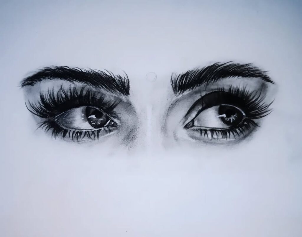 Two peaceful eyes drawn with soft shadows. The light lines around lashes give a smooth look.