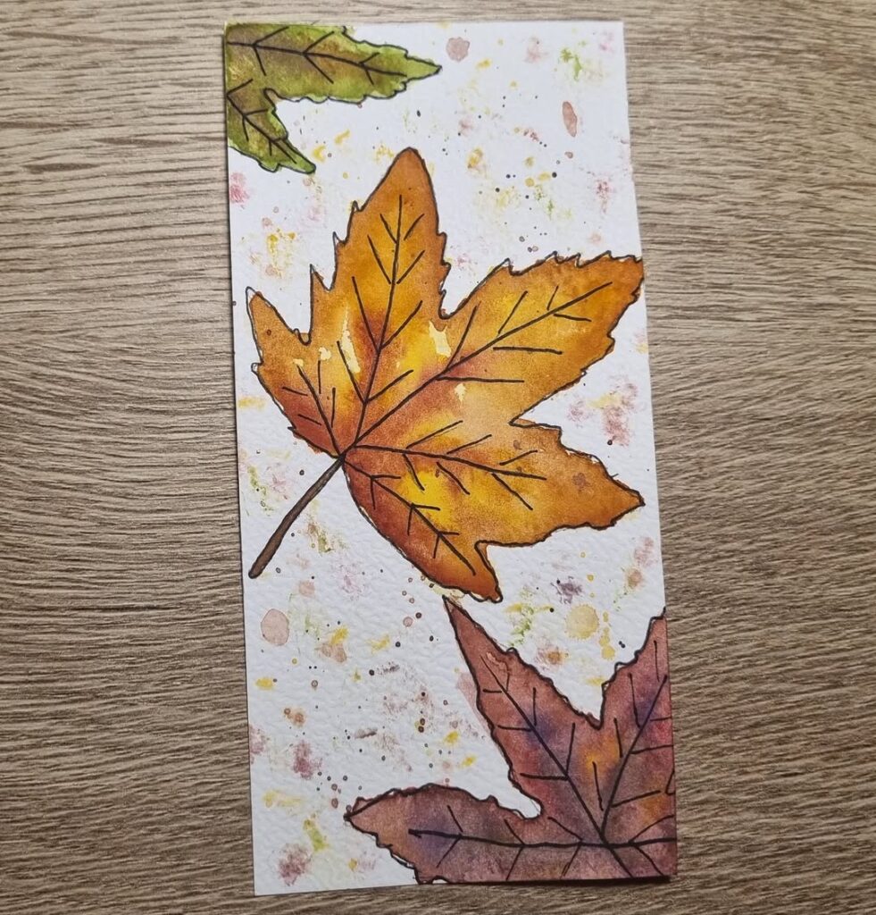 Simple watercolor leaves in warm orange, yellow, and brown shades. Each leaf looks soft and natural, showing the change of seasons.