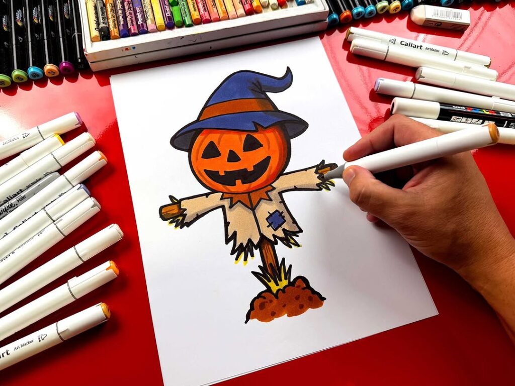 This easy fall drawing helps practice shapes, Halloween art, and marker coloring techniques while keeping the design bright and festive.