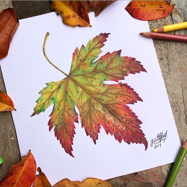 This idea is perfect for fall art beginners who want to learn realistic sketching with gentle color blending.