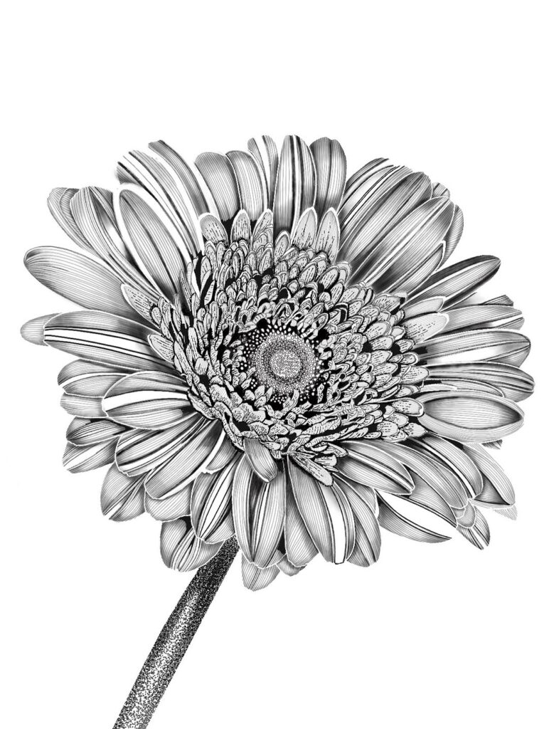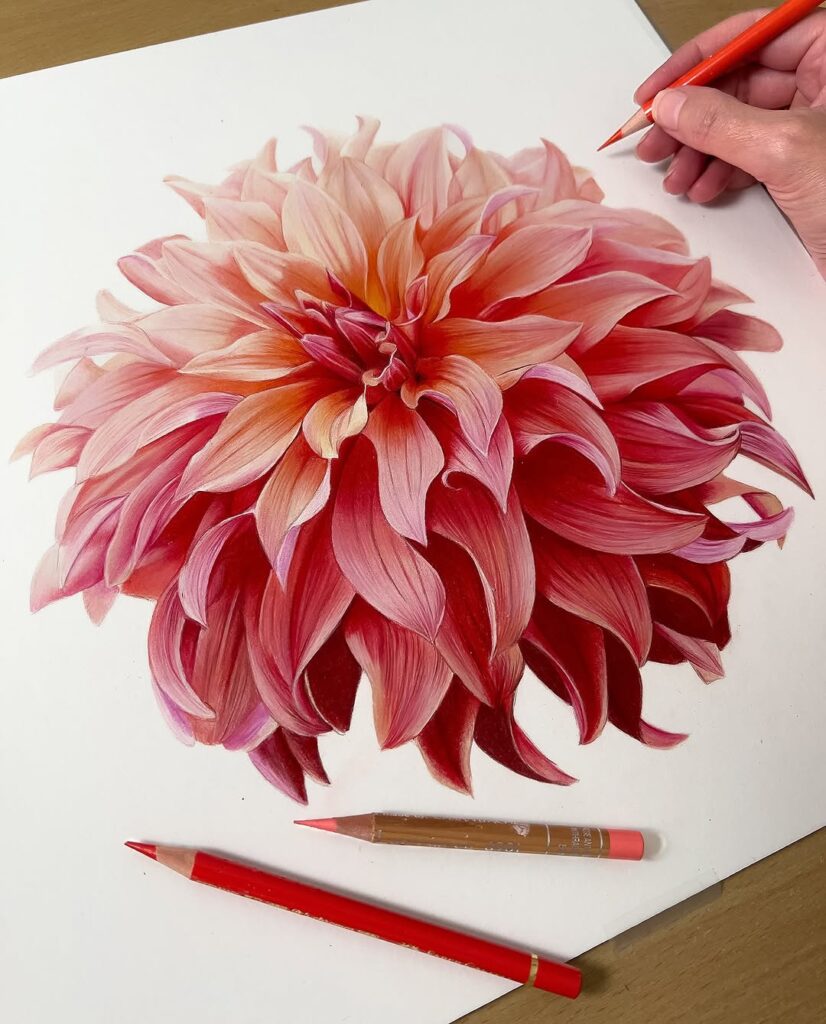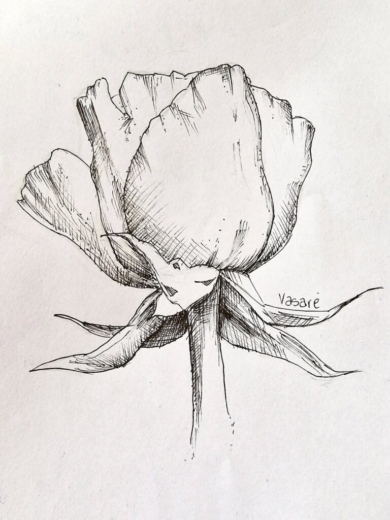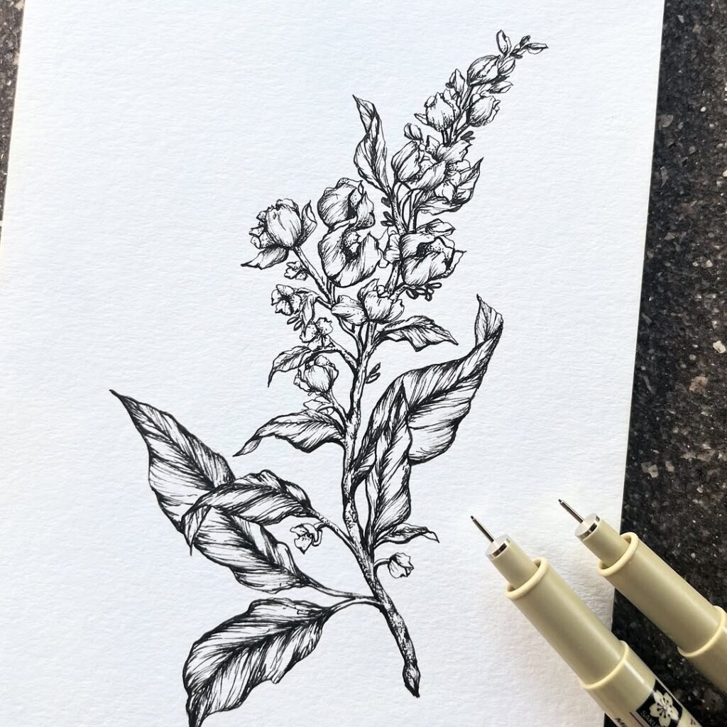 This flower drawing is full of tiny details. The artist used thin lines to make every petal stand out.