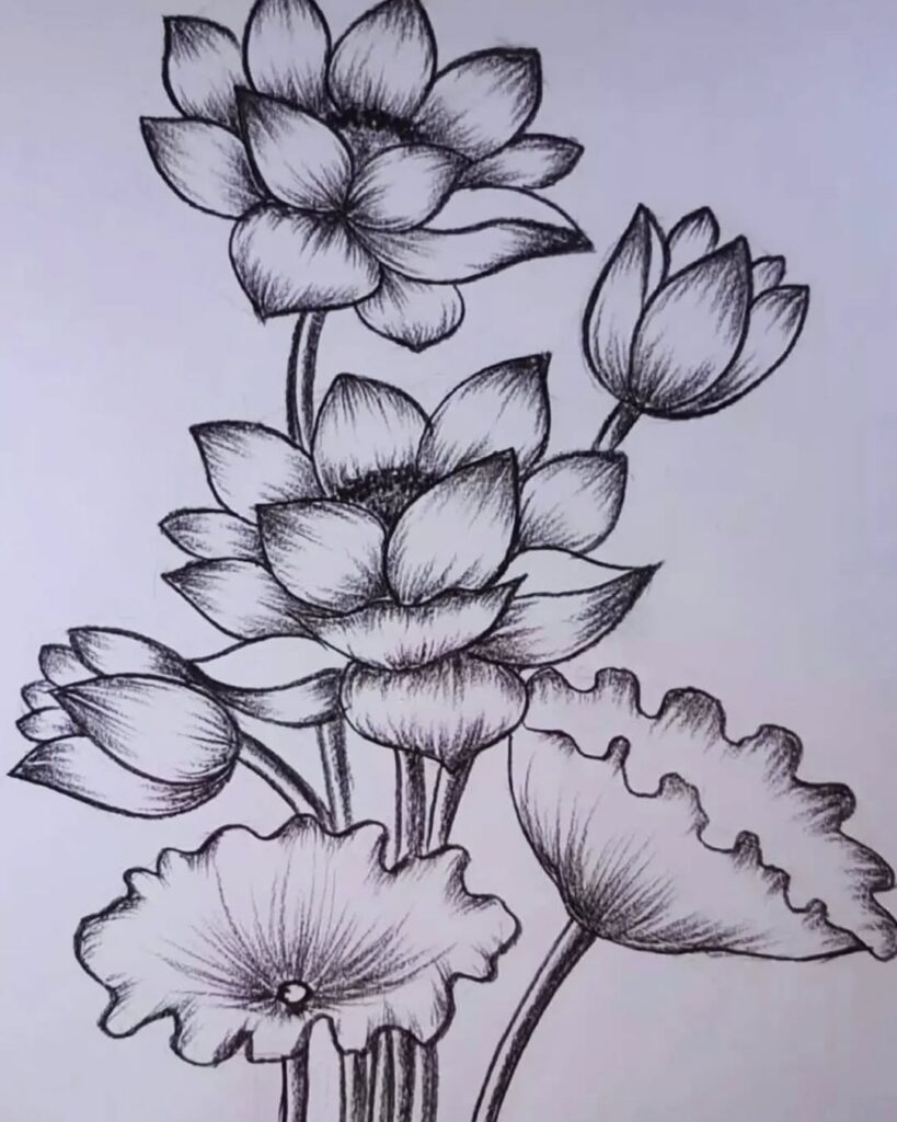 A lovely lotus sketch using black pen. The artist’s shading makes the petals look soft and natural. Peaceful and inspiring, perfect for meditative art practice.