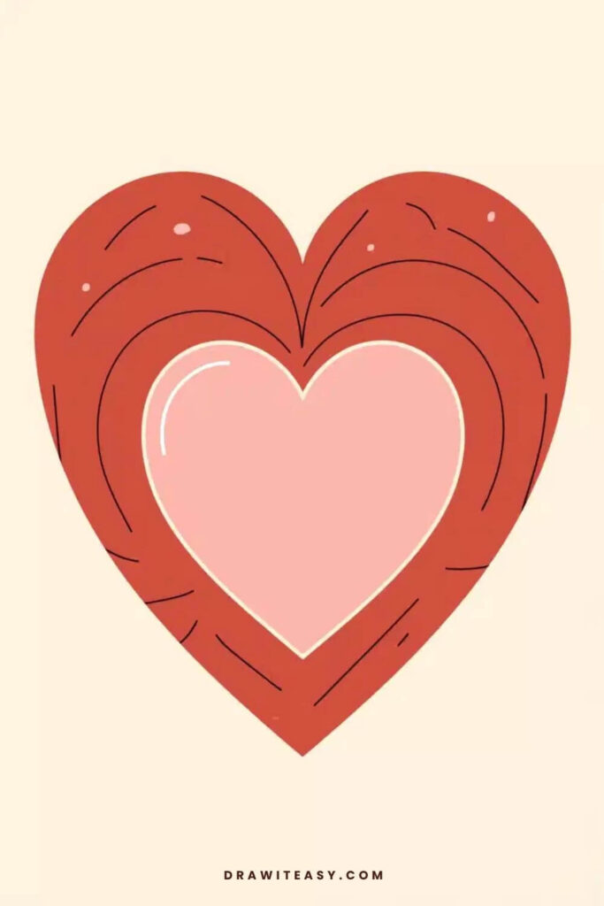 This simple drawing shows a soft pink heart inside a larger red heart with clean lines. It feels warm and easy to copy, making it a great beginner-friendly symbolic heart idea.