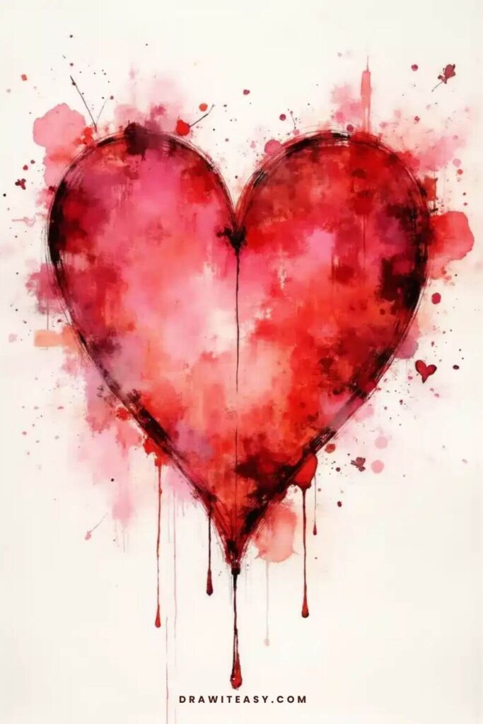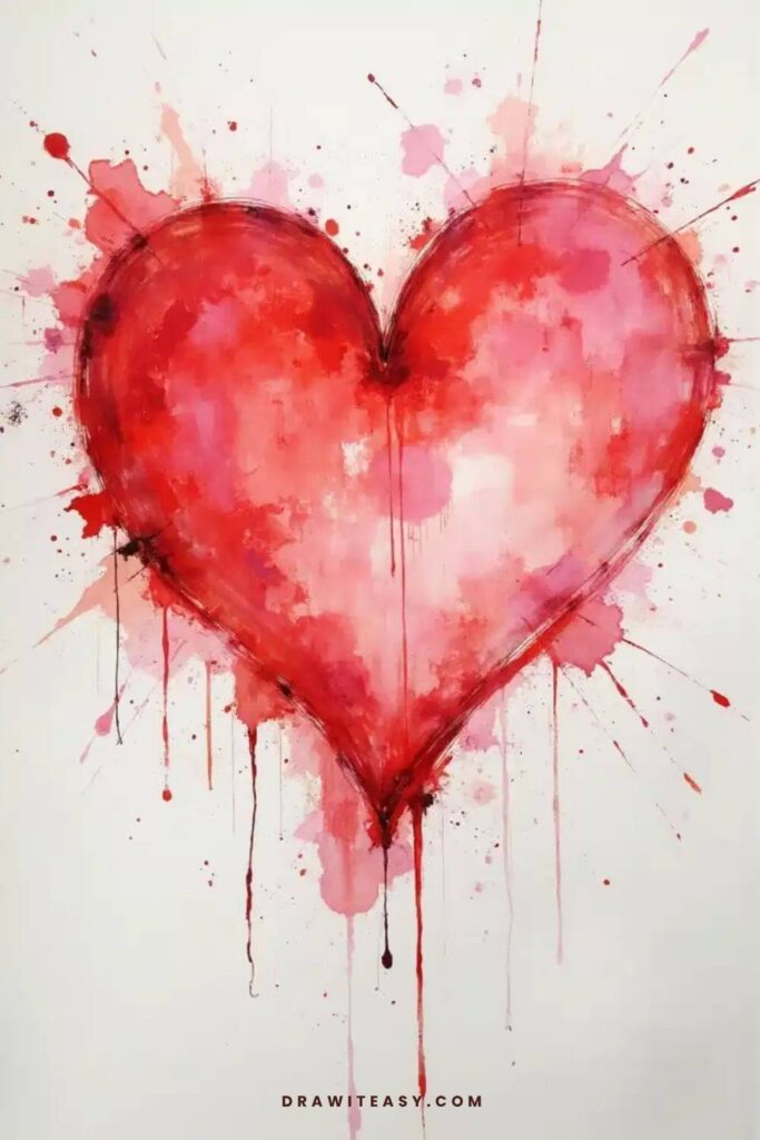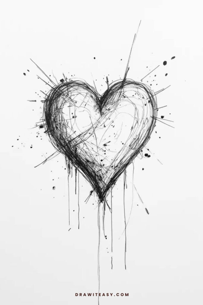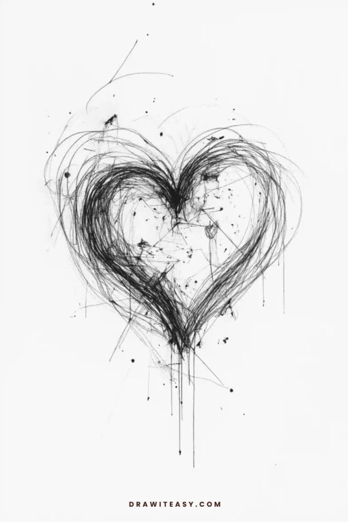 Here you see a loose, messy heart made with fast lines and splatters. It looks simple yet full of emotion, great for beginners who want expressive symbolic heart art.